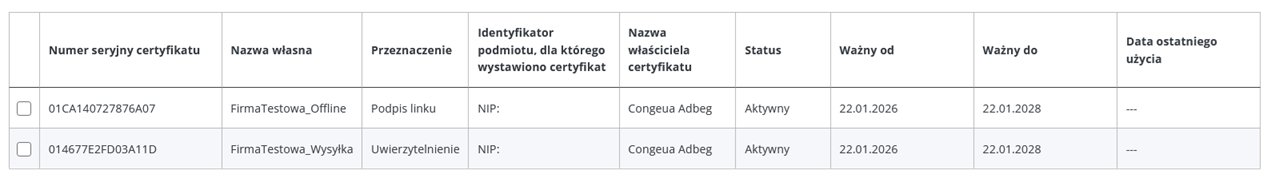 13. W nowy widoku zobaczymy nasze wygenerowane certyfikaty