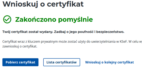w tym momencie klikamy Pobierz certyfikat i zapisujemy plik bez zmiany nazwy w tym samym miejscu gdzie poprzednie pliki.