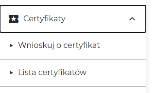 3. W kolejnym oknie, w menu po lewej stronie rozwinąć menu Certyfikaty i kliknąć na Lista certyfikatów