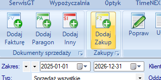 1. Po zalogowaniu do programu Sprzedaż należy z górnego menu wybrać Dodaj zakup
