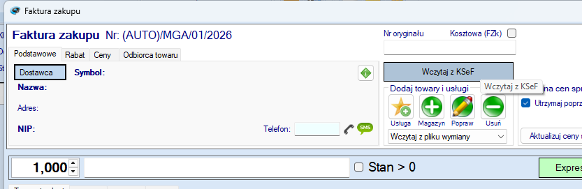 2. W oknie dodawania FZ proszę kliknąć Wczytaj z KSeF